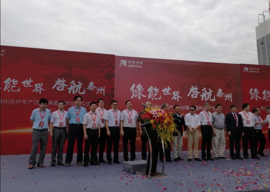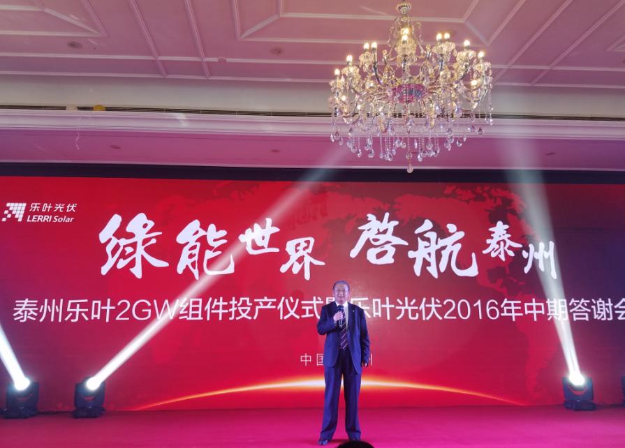 2016年9月6號(hào),細(xì)雨綿綿,彩旗飄展,江蘇泰州市海陵區(qū)隆基樂葉2GW太陽能電池組件一體化項(xiàng)目舉行隆重的投產(chǎn)儀式。隆基股份董事長鐘寶申發(fā)表主旨演講。國務(wù)院參事、中國可再生能源學(xué)會(huì)理事長石定寰、國家發(fā)改委國際新能源研究所所長王進(jìn)、招商新能源CEO李原、泰州市海陵區(qū)徐克儉書記等先后發(fā)表了熱情洋溢的講話。充分肯定了泰州樂葉建設(shè)的高速度、產(chǎn)能的高效化、盛贊隆基股份已成為國際單晶硅、硅片、電池、組件的最大供應(yīng)商之一。