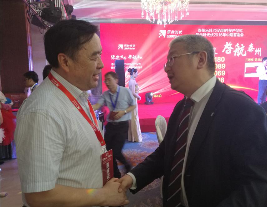 在投產(chǎn)儀式上,趙振元親切拜訪隆基股份董事長鐘寶申、總裁李振國,祝賀隆基泰州樂葉2GW項(xiàng)目的成功投產(chǎn),祝賀隆基股份的快速發(fā)展,衷心感謝隆基股份長時(shí)期以來對十一科技的充分信任,并期待在新項(xiàng)目中全面合作。鐘寶申董事長、李振國總裁衷心感謝趙振元同志在繁忙之中光臨慶典,感謝十一科技長期以來的高水平服務(wù),并期待著在未來進(jìn)行更加廣泛的全面合作。